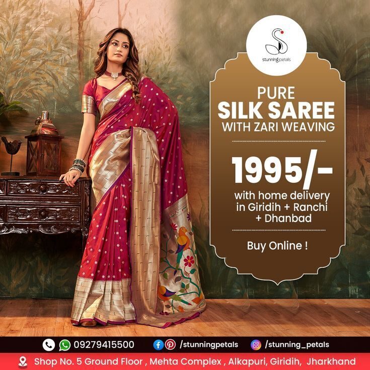 👗 Explore our latest arrivals in Banarasi, Kanjeevaram, Silk, Designer, and Partywear Sarees.🎁 Exclusive Festival Combo Deals –